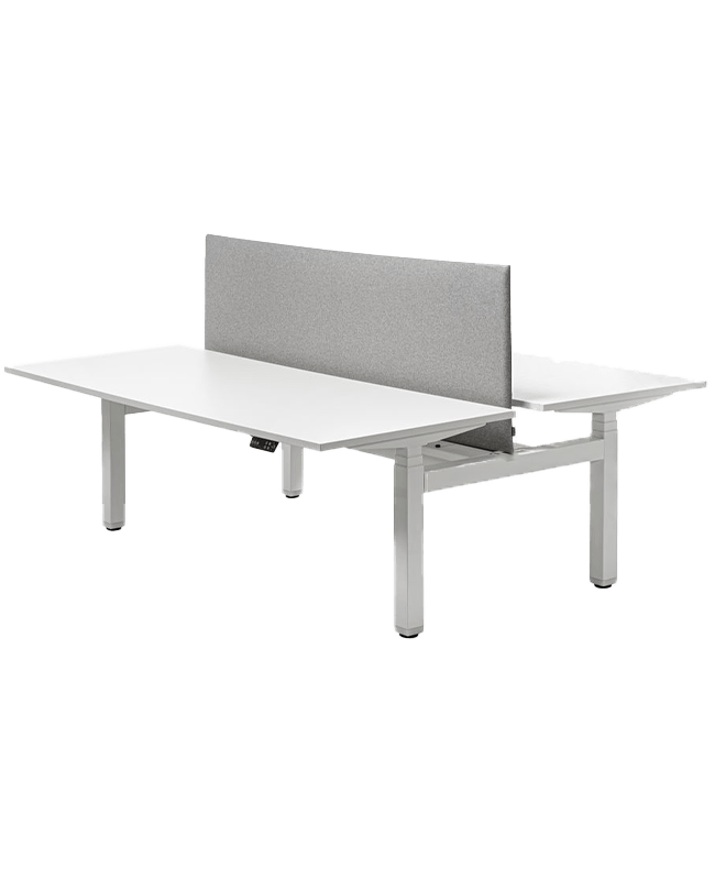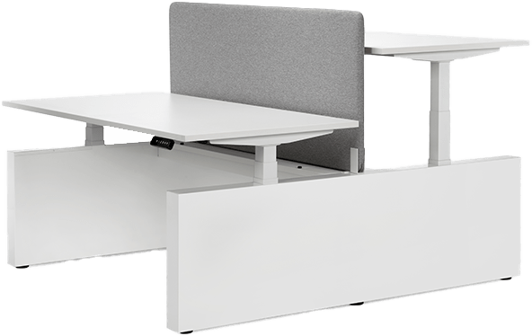 Zit sta bureaus zijn er in vele soorten en maten. Daarmee kunt u dus vrijwel alle soorten zit sta werkplekken van uw keuze creëren. Er zijn enkele bureaus (voor één persoon), hoekbureaus, duo desks (voor twee personen) of zogenaamde benches (voor vier, zes of meer personen). Wat u ook kiest, u maakt altijd gebruik van een in hoogte verstelbaar bureau. De hoogte is elektrisch verstelbaar of handmatig, door middel van een spindel. Voor meerpersoons zit sta werkplekken bestaan er akoestische tussenschotten, voor het dempen van omgevingsgeluid.